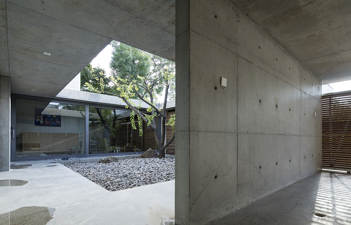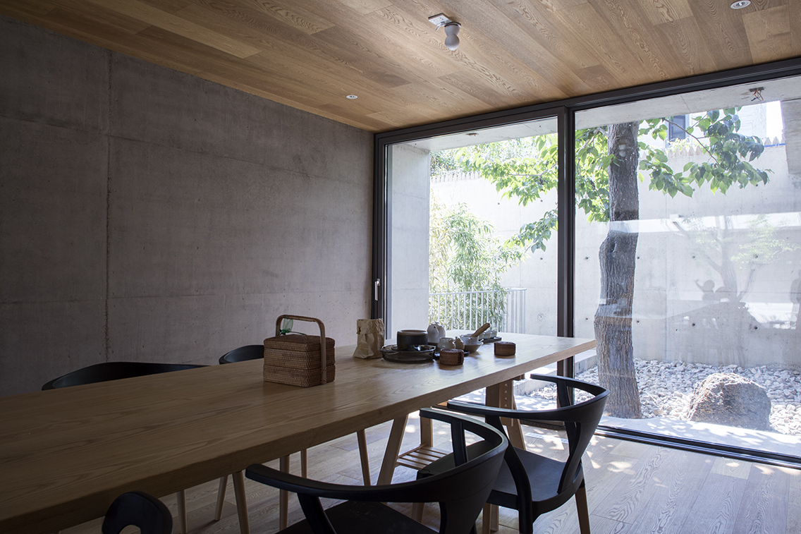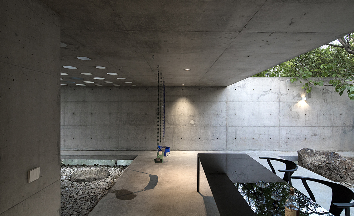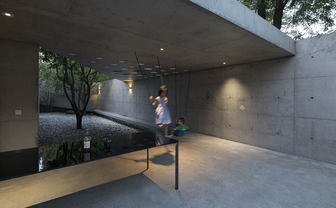 这是一个旧房改建的项目,原建筑是一个地上两层、地下一层的别墅,房屋附属的空地分布在建筑的四周。这个建筑与周围的别墅相比,唯一不同的是东侧的空地是一个70cm落差的缓坡,在这个普通的别墅区里,成为一个有趣的特质