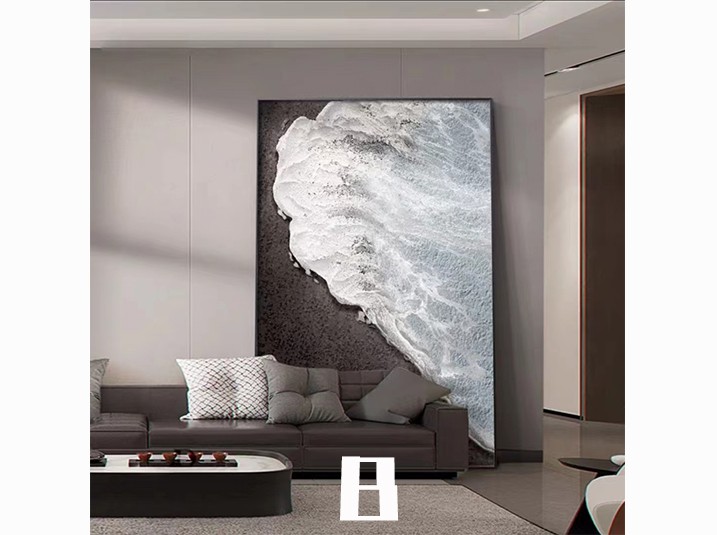 黑白客厅挂画抽象肌理装饰画