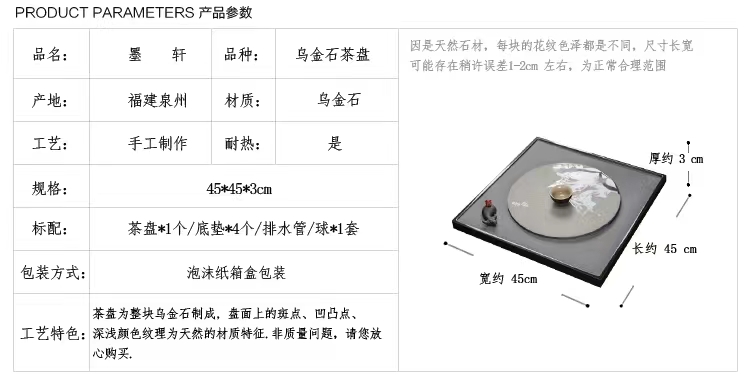乌金石茶盘小号椭圆形石茶台排水茶几
