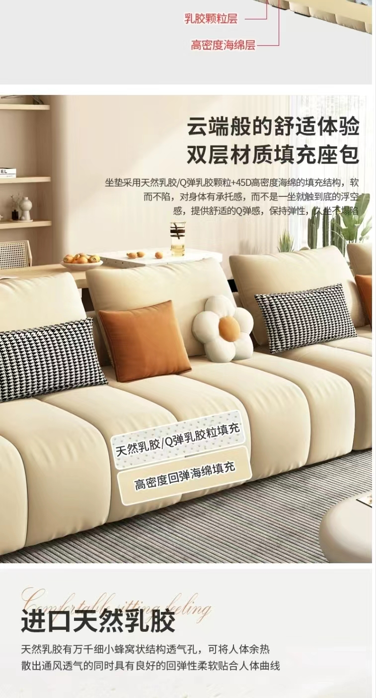 云朵沙发法式奶油风简约现代客厅直排防猫抓布沙发