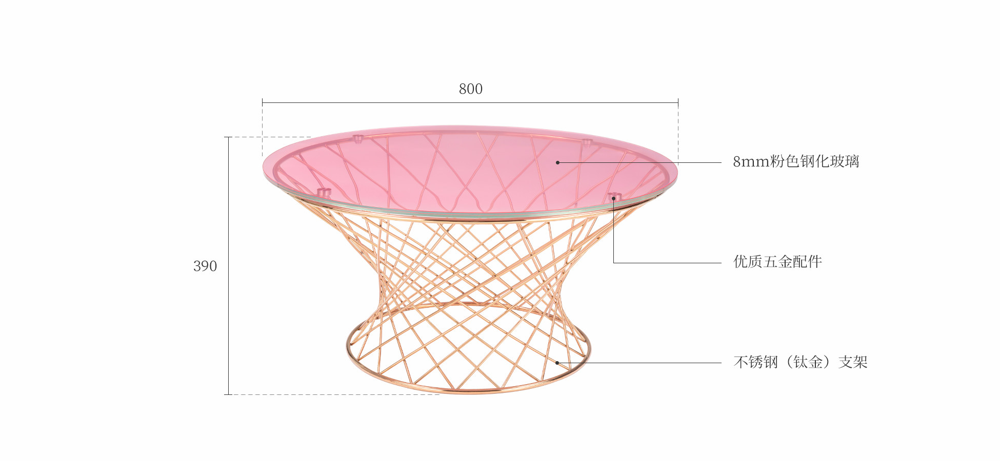 达铂悠茶几|角几|粉色钢化玻璃+不秀钢